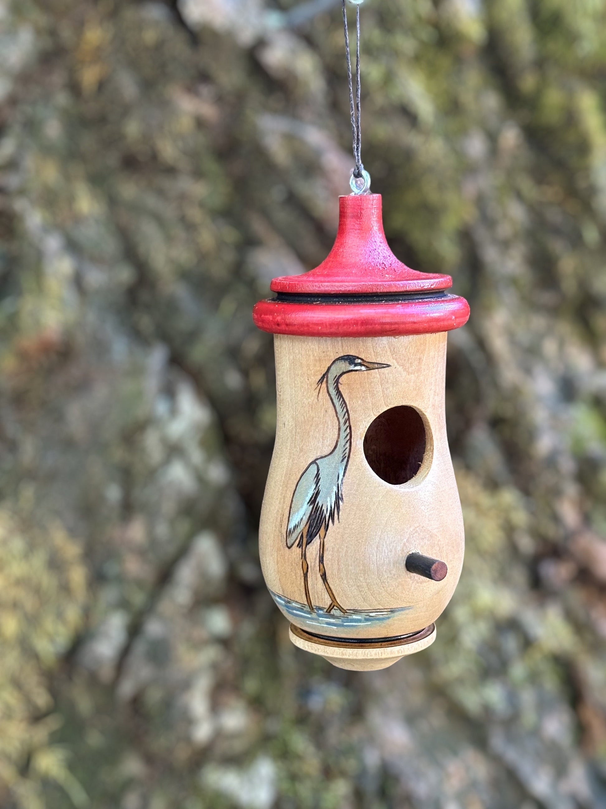 Hummingbird House, Great Blue Heron Art, Handmade Wooden Birdhouse for Indoor/Outdoor, Bird Lovers Gift, Christmas Gift for Streams Rivers